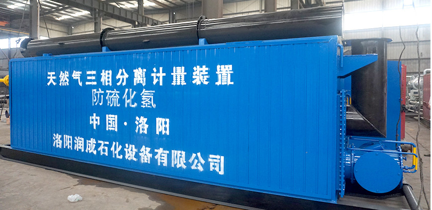三相分離器是油田開(kāi)發(fā)生產(chǎn)過(guò)程中常用的設(shè)備之一。我公司生產(chǎn)的防硫防酸三相分離器也被稱(chēng)為防硫防酸三相分離計(jì)量裝置,廣泛適用于油氣井測(cè)試過(guò)程中自噴井地層流體噴至地面后,對(duì)油氣水進(jìn)行三相分離,分別計(jì)量三相流體的產(chǎn)量,并求取其化學(xué)、物理性質(zhì)的工作 。臥式三相分離器裝有氣體壓力控制閥,氣油界面和油水界面可自動(dòng) 控制,安裝在油田專(zhuān)用橇上。裝置配有完整的管匯系統(tǒng),包括旁通管線及油,氣, 水互連管匯,所有管匯的進(jìn)出口使用由壬連接,易于操作。設(shè)計(jì)有可拆卸式防撞外框架。